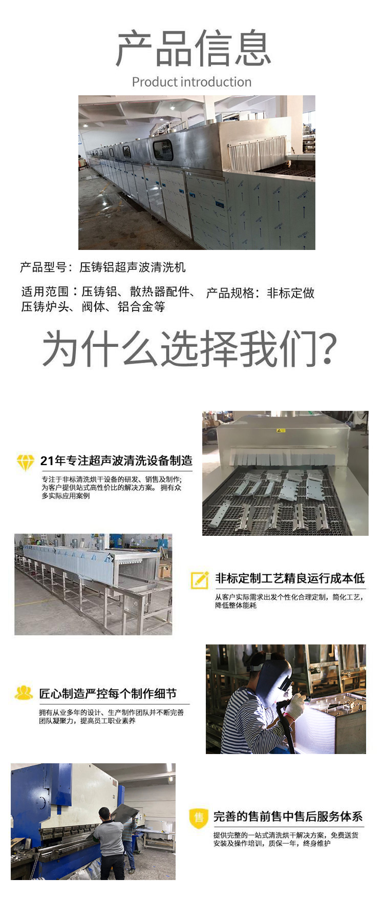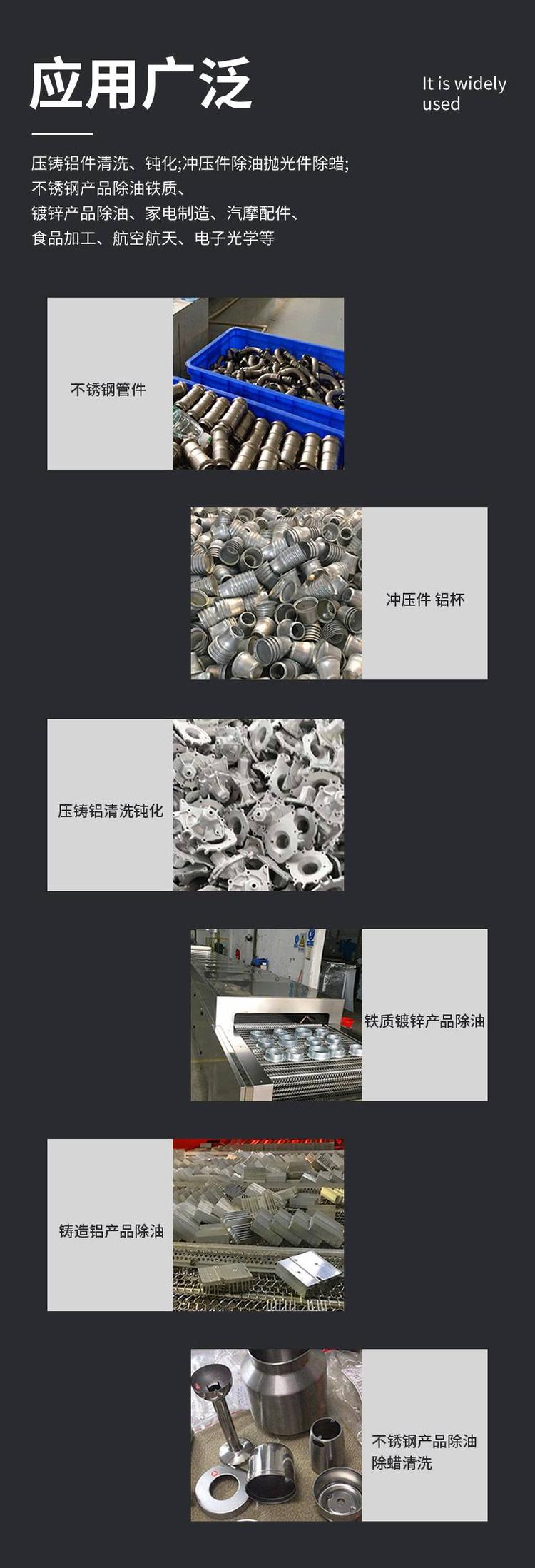 鋁合金壓鑄件超聲波清洗機(jī)是一臺(tái)履帶式超聲波清洗烘干線,采用特制網(wǎng)鏈傳動(dòng)輸送工件,具賄超聲波粗洗、超聲波精洗、鼓泡過(guò)水、切水、烘干、等功能的連續(xù)式清洗烘干設(shè)備。只需要人工將工件放在特制的傳動(dòng)網(wǎng)鏈上,工作時(shí),清洗工件置于輸送帶上,依次通過(guò)清洗室、清洗室、漂洗室、切水室、烘干室完成清洗、漂洗、過(guò)水、吹水、烘干等流程后出料,超聲波槽回液經(jīng)過(guò)濾處理循環(huán)使用,鋁合金壓鑄件超聲波清洗機(jī)具有工位多,功能全,結(jié)構(gòu)合理,操作方便,清洗效果好的優(yōu)點(diǎn),這對(duì)于流水線零件的清洗,改善勞動(dòng)環(huán)境,節(jié)省勞動(dòng)力,提高清洗和吹干質(zhì)量,具有重要的意義